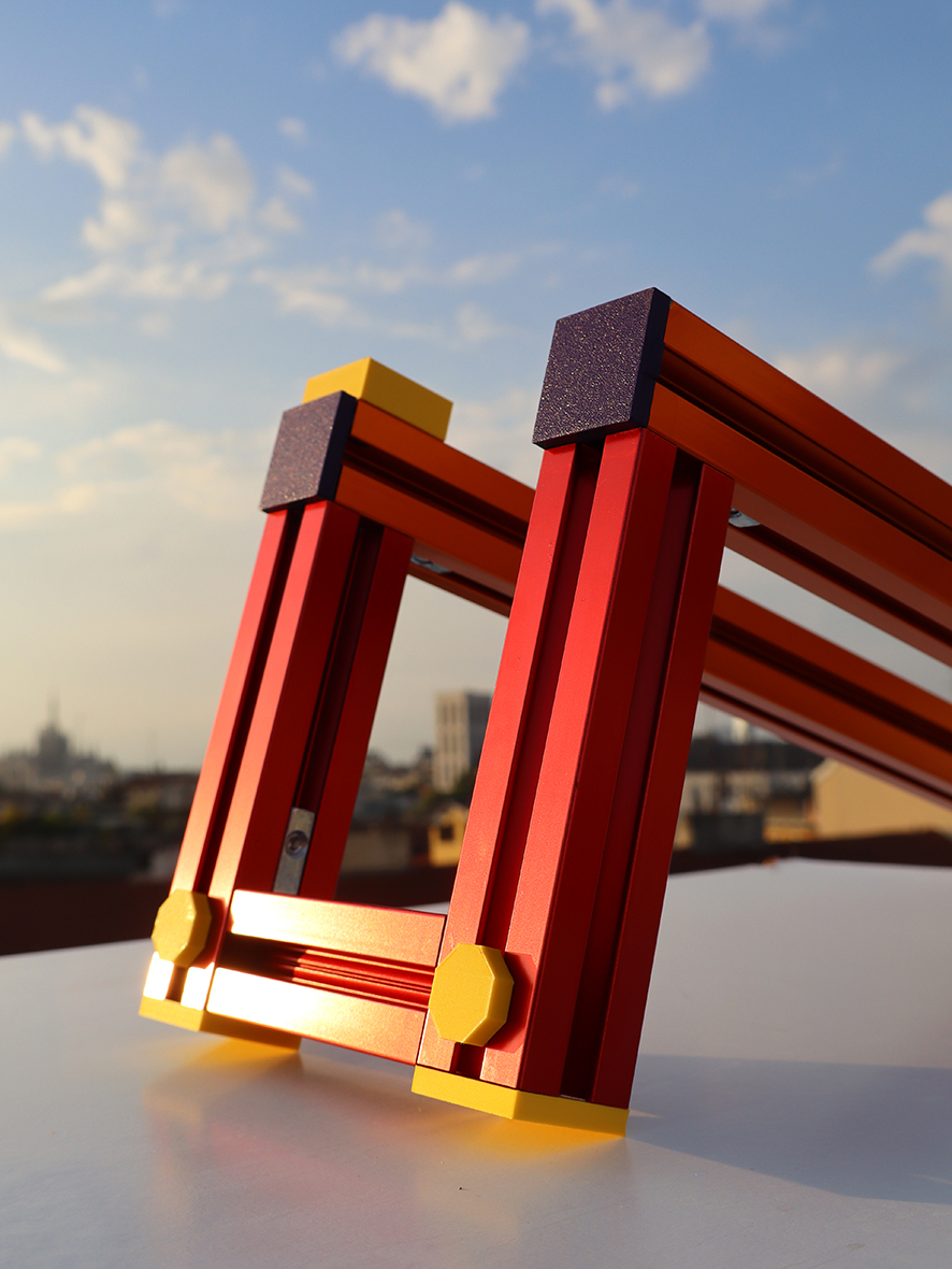 The table lamps are presented as a construction set that creates mini illuminated structures that blend in with furniture. Lightweight and easily adaptable with a minimal footprint at its base, Torre Luce can hold books that fit into a bookcase or small side table. Made from standard aluminium profiles and specially designed 3D-printed parts, the Torre Luce and Astra Luce models are defined as hyper-craft design, a post-industrial approach that repurposes industrial materials, transforming them experimentally and customisably by hand. This hybridisation of tools allows the Stromboli Design studio to self-publish accessible and ingenious objects for the enjoyment of users.