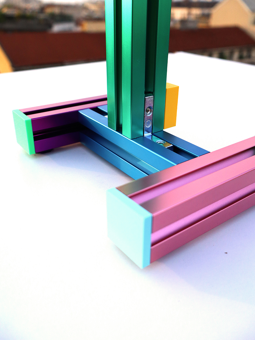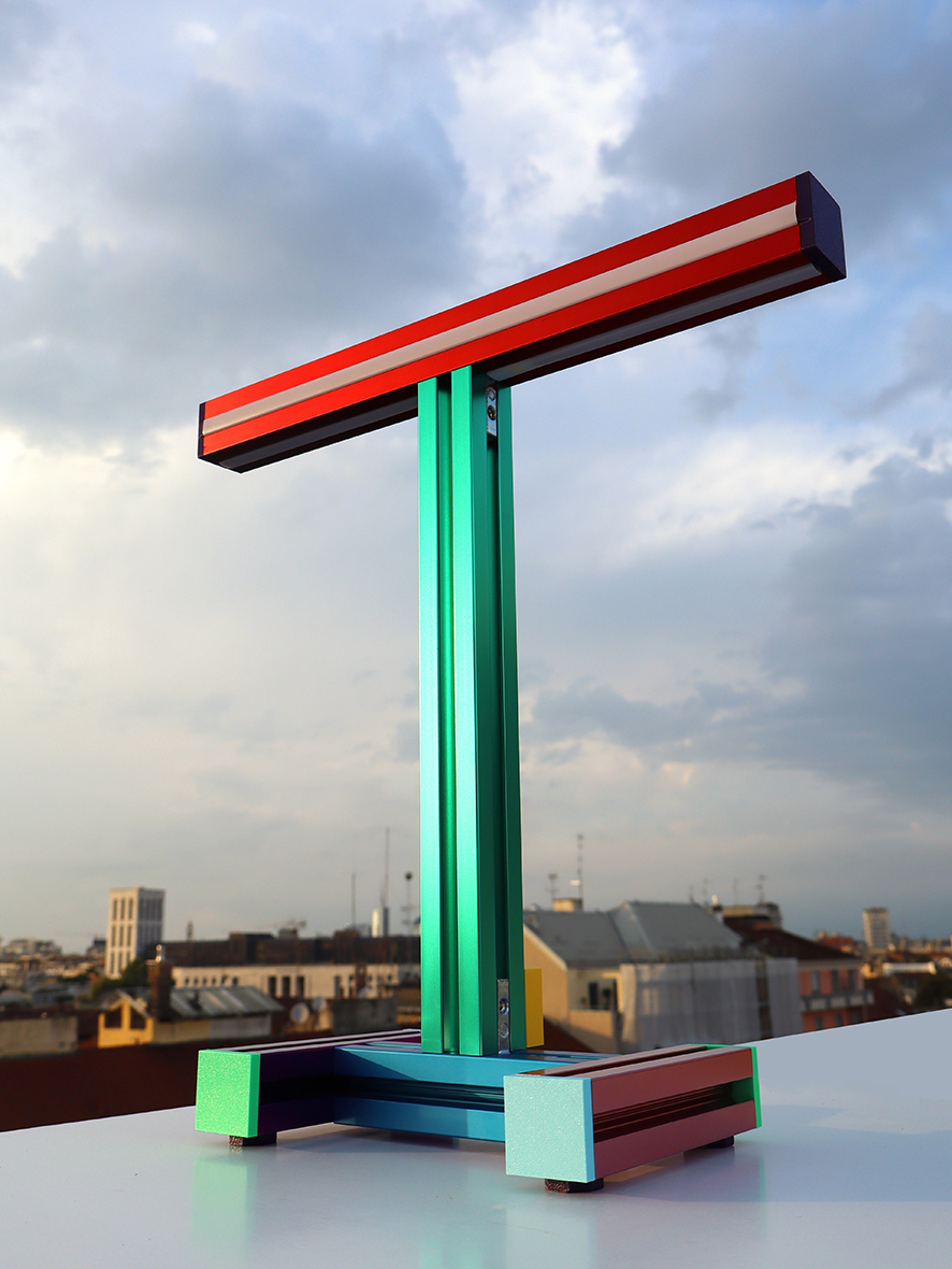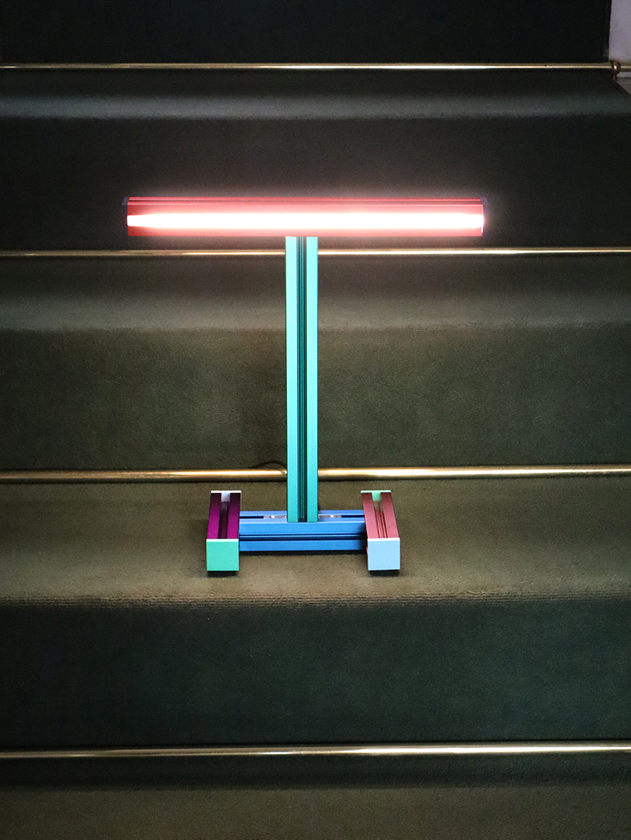 ASTRA LUCE table Light from ASTRA collection is an innovative piece built on the principles of modularity, interactivity and a playful spirit. Astra Luce is composed of standard aluminium profils and dedicated finishings such as the coloring process. In fact, Astra luce is a mix of a piece of industrial design and a crafted game, between open source and tailored features. It incarnates a dear principle found in Stromboli’s appraoch, auto-proclamed Hyper craft for the mix of ressources and ways involed in one object, and the dirty art, in the approach to define a practice from a versatile perspective.